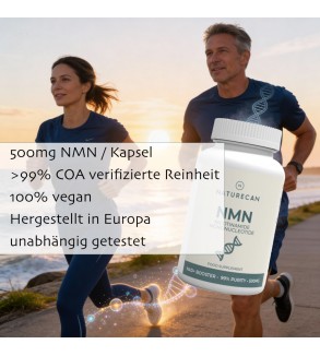 Förderung der Zellgesundheit: NMN trägt möglicherweise zur Erhaltung gesunder Zellfunktionen bei, indem es die Bildung von NAD (Nicotinamid-Adenin-Dinukleotid) unterstützt – einem wichtigen Molekül, das eine zentrale Rolle im Energiehaushalt und Zellstoffwechsel spielt.